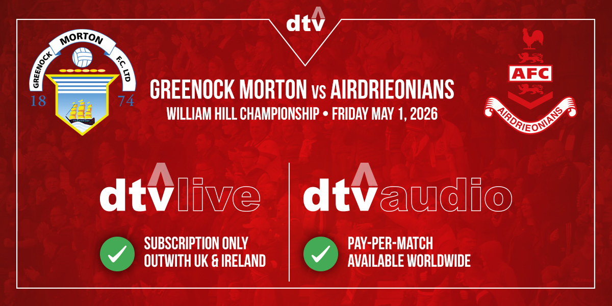 * * * Morton vs Airdrieonians Friday 1st May 19:45. There is no PPV on DTV. We are only able to stream overseas on Friday to subscription holders. Morton as the home team may do a PPV for this game. The game may be on the BBC.